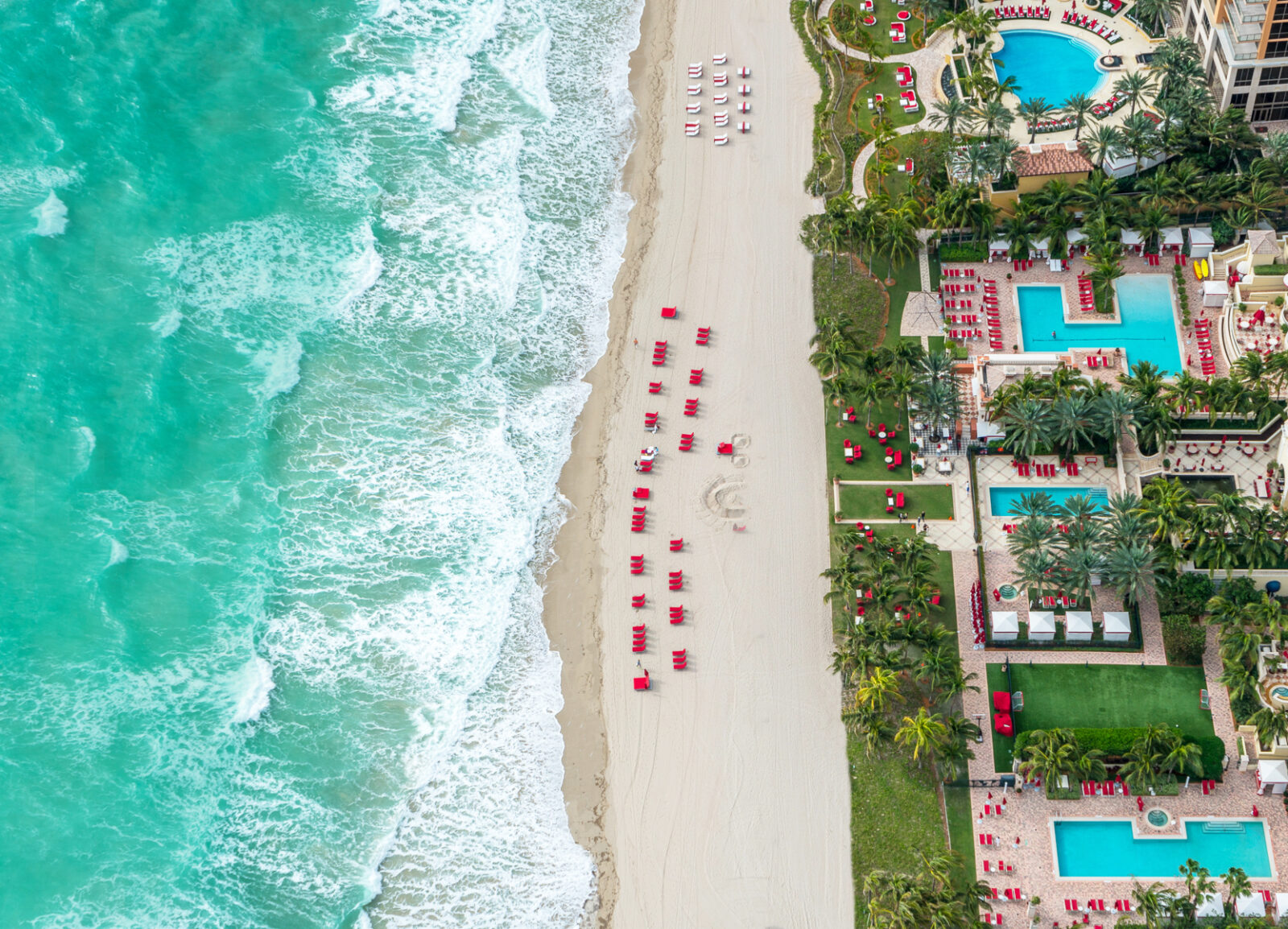 Awarded the #1 Luxury Hotel in the US, Acqualina sits on a lushly landscaped 4.5 acre backyard of seaside bliss with world-class restaurants, curated amenities and spacious rooms and suites all with balconies and water views. Gorgeous private cabanas line three oceanfront pools including an Adult Pool providing the ideal setting for uninterrupted sunbathing and spending quality time with friends. After, the group of friends can enjoy a leisurely meal under elegant palms and the shade of red umbrellas at the beachside Costa Grill.