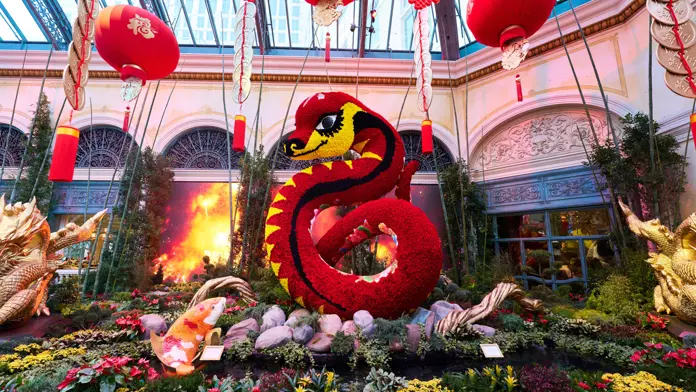 Bellagio’s Conservatory & Botanical Gardens is ushering in the Year of the Snake with a vibrant holiday display, on view from January 11 through March 1. Brought to life by designer Ed Libby, in collaboration with the talented Bellagio Horticulture team, the exhibit immerses visitors in festive traditions, symbolic animals and a rich color palette, thoughtfully celebrating and honoring Asian culture. Each meticulously crafted bed highlights the serpent’s symbolism of intuition, transformation and charm.
