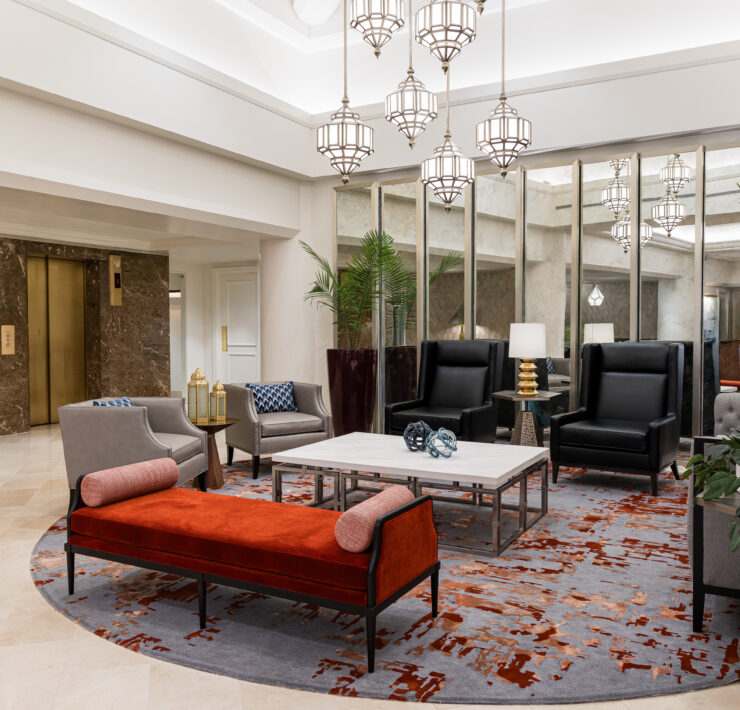 Awash in a palette of greens, pale blues and greys, all layered with natural taupes, tans and textiles, the hotel’s design blends the brand’s signature bespoke style with custom finishes, furniture and touches throughout. Guests enter off Sunset Boulevard into a contemporary, California casual space flooded with natural light and greenery. Inside, light wood floors intersect with pale wood millwork topped with green floral wallpaper and salmon-hued tile work. The overall effect is light, modern, youthful and comfortable, inside and out.