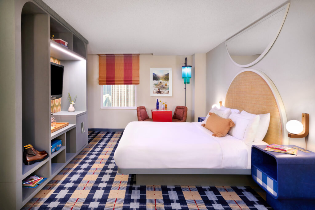 Each of the Curtis’ themed floors brings its concept to life through immersive props, playful decor and interactive elements, while the hyper themed suites dial the experience up to eleven with floor-to-ceiling fun that sparks a transformative stay for guests. The renovation preserves the property’s “Stay Happy” spirit while elevating the guest experience with bold new designs, art curated by NINE dot ARTS and a serious dose of personality that make the Curtis as comfortable as it is photo-worthy.