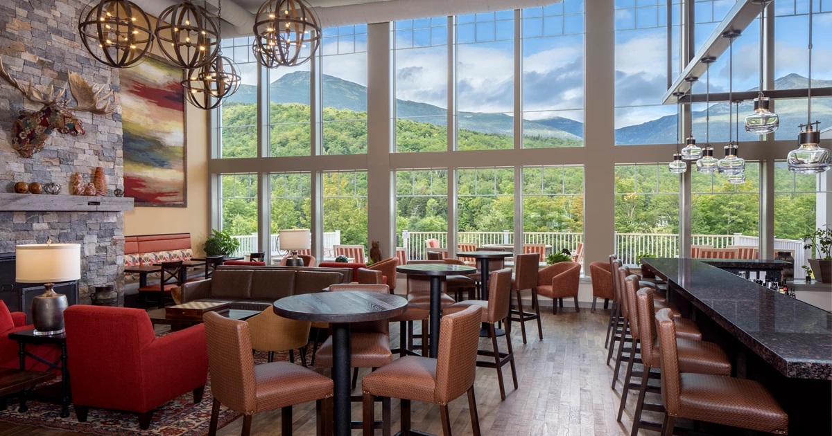 There’s a gym, an indoor saltwater swimming pool, and a welcoming fire pit on the outdoor patio, offering panoramic views of the Whites and the perfect setting for sipping local brews like Autoroad Ale from Tuckerman Brewing Company. Dinner is served at The Notch Grille restaurant, with indoor and outdoor deck seating and a menu of comfort food that’s welcomed after a day outdoors.