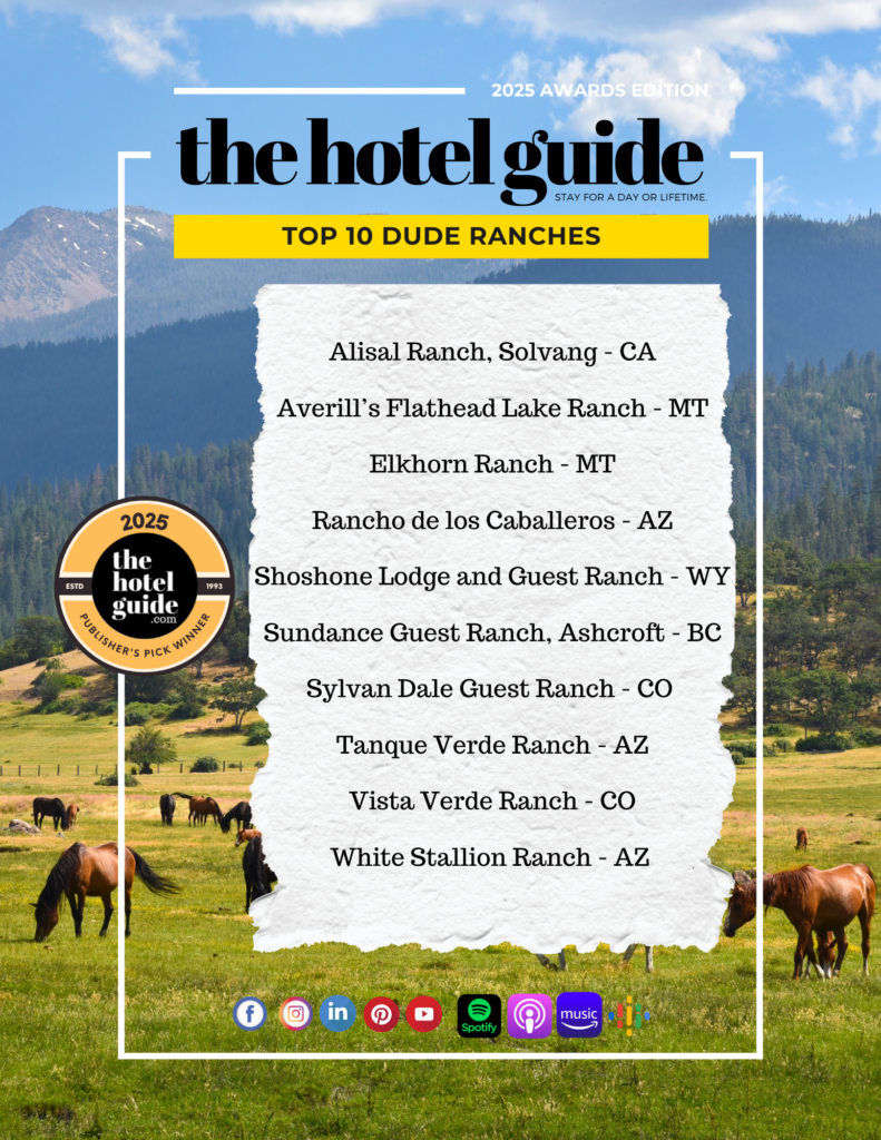 To recognize the properties leading this revival, The Hotel Guide proudly presents its 2025 Top 10 Dude Ranches, honoring destinations that exemplify excellence in ranch hospitality across North America.
